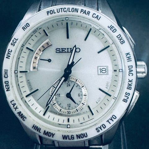 DescriptionCase: 44 mm (diameter excluding crown) x 49 mm (lug to lug)Dial: White dial with black/white markers and handsCrystal: Sapphire glassRadio reception: Confirmed (in Japan only)Strap: OriginalLug width: 20 mmLength including watch head: 19 cmService history: UnknownBattery life: UnknownInsured shipping via the following channels:Local shipping: Local registered postal mailInternational shipping: DHL ExpressIMPORTANT NOTES!! PLEASE NOTE BEFORE BIDDING!!1. The watch is sold on an as is condition. Unless otherwise stated, no warranty is provided and no claims for timekeeping accuracy, water resistance etc. will be allowed or entertained.1. Kello myydään sellaisena kuin se on. Ellei toisin mainita, takuu ei ole voimassa eikä aikakellon tarkkuuteen, vedenpitävyyteen jne. liittyviä vaatimuksia hyväksytä tai käsitellä.2. The buyer shall be responsible for additional customs and/or value-added taxes that may be levied by the tax authorities of each country. Therefore, please check with the relevant authorities if you are unsure and bid accordingly. In the event the buyer fails to take delivery due to non-payment of taxes payable, the buyer shall still be liable for all shipping, customs clearance and other admin costs incurred.2. Ostaja vastaa mahdollisista lisäveroista, joita kunkin maan veroviranomaiset voivat periä. Tarkista siis asianomaisilta viranomaisilta, jos olet epävarma, ja tee huuto sen mukaisesti. Mikäli ostaja ei ota toimitusta vastaan verovelan maksamatta jättämisen vuoksi, ostaja on silti vastuussa kaikista toimituksesta aiheutuvista lähetysten, tullauksen ja muiden hallinnollisten kustannusten menoista.3. In the event of cancellation at the buyer’s discretion after shipment, the buyer shall be liable for all return shipping charges, admin and custom charges payable to ship back and re-import the watch.3. Mikäli ostaja peruuttaa toimituksen jälkeen omasta tahdostaan, ostaja vastaa kaikista palauttamiseen liittyvistä palautuslähetyksen kuluista, hallinnollisista sekä tullimaksuista, jotka on maksettava kelloa takaisin lähettämiseen ja uudelleen maahantuloa varten.4. International transit (excluding customs clearance and last mile delivery) usually takes up to 2 weeks but may take longer depending on the country and location, public holidays, war situation in Ukraine, global pandemic situation and so on.4. Kansainvälinen kauttakulku (tullauksen ja viimeisen mailin toimituksen pois lukien) kestää yleensä jopa 2 viikkoa, mutta voi kestää pidempään riippuen maasta ja sijainnista, yleisistä pyhien ajoista, Ukrainan sodan tilanteesta, maailmanlaajuisesta pandemiatilanteesta jne.5. Please note also that we have no influence or control over how fast the customs authority of each country processes the parcel upon arrival in your country.5. Huomaa myös, ettemme voi vaikuttaa tai hallita, kuinka nopeasti jokaisen maan tulliviranomainen käsittelee paketin saapumisen jälkeen maahasi. Therefore, please check with your customs authority/postal service once the item arrives in-country.Siksi tarkista tulliviranomaisiltasi/postipalvelultasi aina kun tavara saapuu maahan.