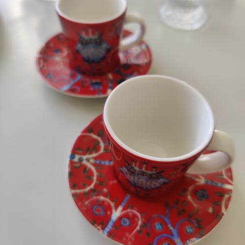 Iittala muki ruskealla ulkopinnalla ja vaalealla sisäpinnalla. Materiaalina on lasitepintainen keramiikka. Sopii esimerkiksi kahvin, teen tai muiden kuumien juomien tarjoiluun arjessa. Muki on konepestävä.