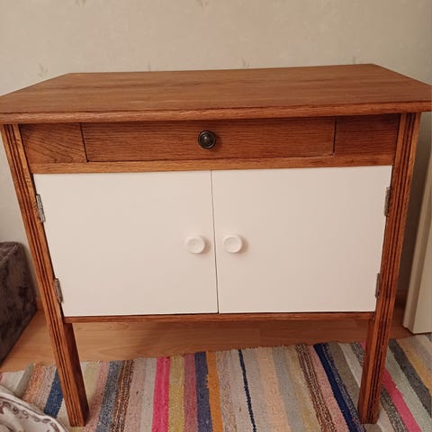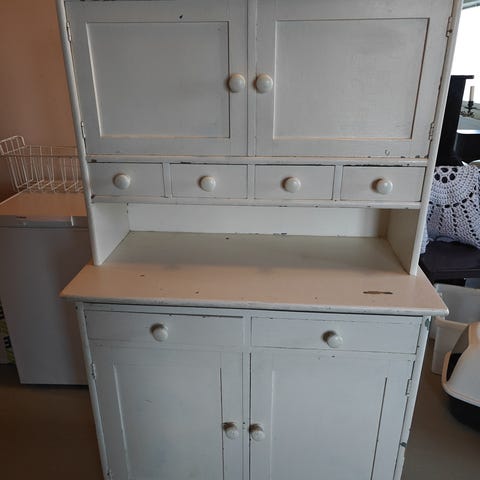 Kaunis, täyspuinen, vanha senkki/kaappi. Maalattu hennon vaaleanpunaisella kalkkimaalilla ja päälle laitettu vaha, rätti liikkuu mukavasti.