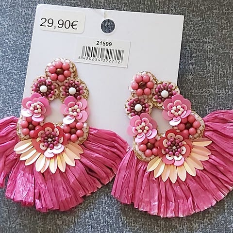 Useita eri värisiä helmiä, tosi kevyet korvissa. Koko noin 2,5cm x 6cm. Nikkelivapaat.