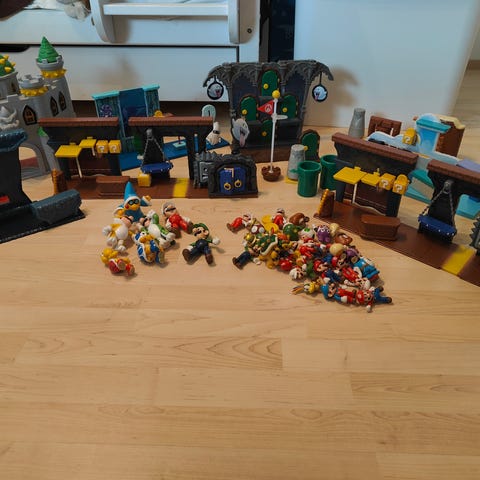 Super Mario tasohyppely-lelusarja. Tämä myynnissä oleva paketti on yhdistelmä useampia erillisiä osia kyseisestä lelusarjasta.