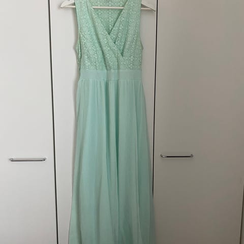 Raskausajan violetti ilta- tai juhlapuku, koko M. Mekossa on polvipituinen malli, lyhyet olkapäät peittävät hihat ja laskostettu yläosa. Olkapäillä on koristeelliset helmiyksityiskohdat. Selässä vetoketjukiinnitys. Sopii juhliin ja muihin pukeutumista vaativiin tilaisuuksiin.