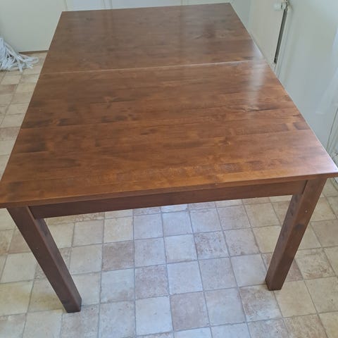 Mitat pöydälle 130×90 ja jatkopala 45cm.