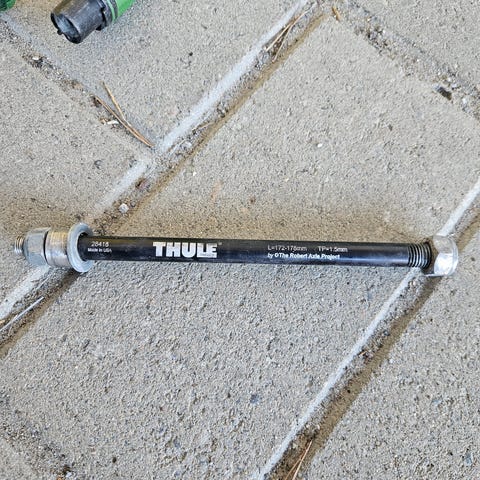 Thule akseli polkupyörään peräkärryn vetoa varten.