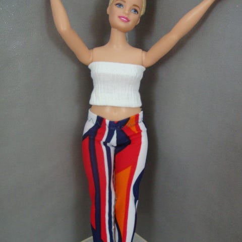 Uusia, käsintehtyjä barbin vaatteita. Vaatteet kestävät leikkiä ja väljempinä helpompia pienen leikkijän pukea kuin aidot barbien asut. Sopivat monille n.29.cm nukeille, myös retro-barbeille. Savuton, homeeton ja eläimetön talous. Kuvien barbie nuket eivät ole myynnissä! Hinta 5e/asu/kuva (+postimerkki).
