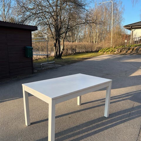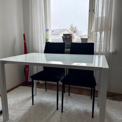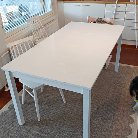 Ruokapöytä: kiiltovalkoinen, metallijaloilla