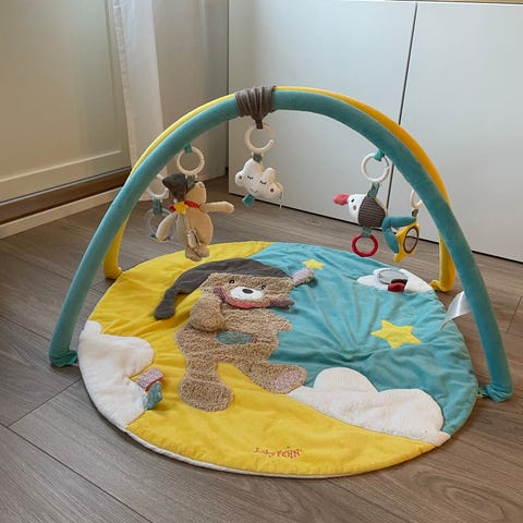Erittäin siisti kunto, ei mitään tahroja tms. Mukana kaikki alkuperäiset lelut. Ihanan pehmeä matto ja kivat lelut! Maton koko 80x105cm. Eläimetön koti.