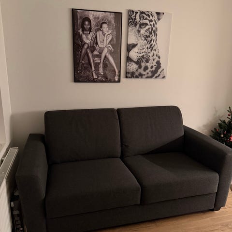 Sohva on palasina varastossa, jotka eivät yksittäin paina kovin paljoa, mutta ainakin runko silti vaatii kaksi ihmistä käsittelemään sitä. Voin auttaa kannossa tässä päässä. Kaikki ruuvit tallessa, niihin tarvitsee vähän erikoisemman meisselin kasaamiseen.