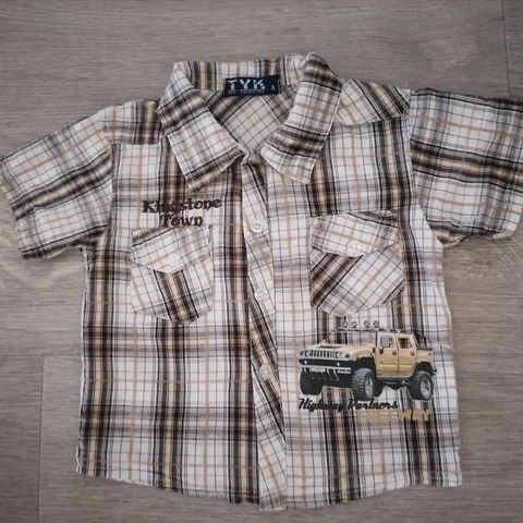 Valkoinen, perussiisti lyhythihainen kauluspaita. Ciraf 98cm,vastaa kokoaan.