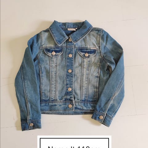Hm farkkutakki koko 110. Tämä on pehmoinen, ei ollenkaan jäykkä ja jähmeä vaan enemmän strech tyyppinen. Ehjä ja oikein siisti. Nepparit