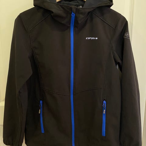 Siisti Icepeak välikausitakki, koko 164. Väri turkoosinsininen, sisäpuolella kontrastivärinen vuori. Materiaali 100 % polyesteriä. Takissa on huppu, edessä vetoketju ja kaksi vetoketjullista sivutaskua. Helmassa on kiristysnyöri.