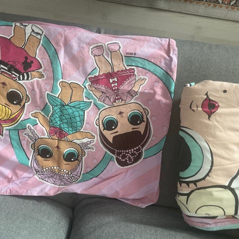 Täysikokoiset Gabbyn nukketalo -kuosiset pussilakana ja tyynyliina. Hyvässä kunnossa, värit normaalissa käytössä ehkä hiukan haalistuneet.