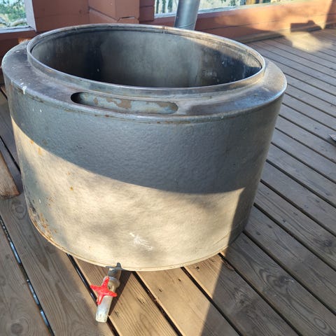 Kotakiukaan säiliö jouten. Täyttöaukon kansi puuttuu, näppärä taittelee pellistä uuden. Nouto Joroisista.