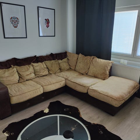 Sohva on pesty säännöllisesti tekstiilipesurilla.