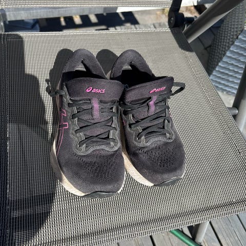 Ahkka juoksukengät, koko 37. Väriltään kengät ovat keltaiset valkoisilla nauhoilla ja valkoisella pohjalla. Päällinen on verkkomainen ja hengittävä, ja pohja on muotoiltu juoksuun ja muuhun liikuntaan. Sopivat juoksuun ja yleiseen urheilukäyttöön.