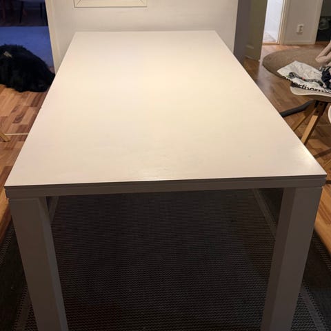 Vaatii pintakäsittelyn, jatkettava pöytä noin kuudelle henkilölle. Puuta. Jos olet innokas tuunaaja saat tästä vielä hienon pöydän