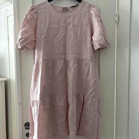 Nanso Leija -tunika/mekko naisille. Koko L. Kai-kai 56 cm, olka-helma 95 cm. Väri vanha roosa/vaaleanpunainen. Pitkähihainen malli, jossa pyöreä pääntie ja helmassa poimutettu röyhelö. Materiaali 87 % puuvillaa, 9 % polyesteriä ja 4 % elastaania.
