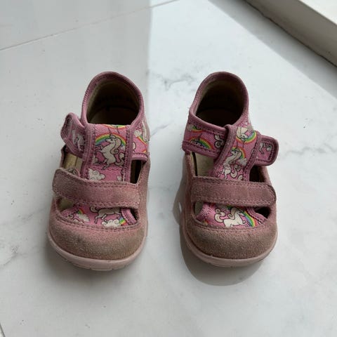 Myydään pari kertaa jalassa pidetyt Jonap B9 Sandaalit. Slim-lesti. Väri pinkki, glitteripallot. Pintamateriaali nahkaa ja sisävuori meshiä. Sisämitta 17,2 cm.