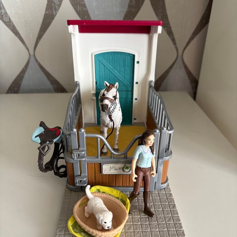 Schleich hevoskarsina koostuu karsinaosasta ja katto-osasta. Sopii käytettäväksi Schleich-hevosfiguurien ja muiden vastaavien lelujen kanssa sisällä leikkimiseen.