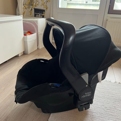 Turvaistuin ja telakalla oleva turvakaukalo