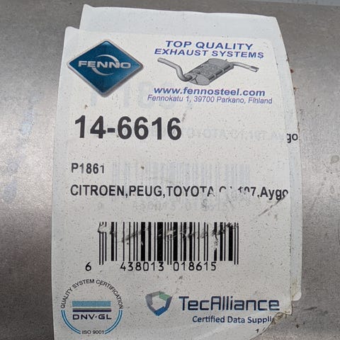 Toyota (myös Citroen ja Peugeot) pakoputki. Motonet varaosanumero 14-6615.