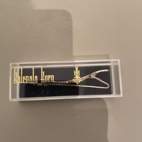 Hyväkuntoinen mutta tummunut Kalevala korun Hirvenpää solmioneula.