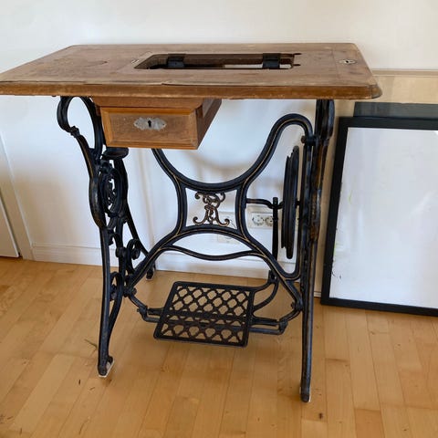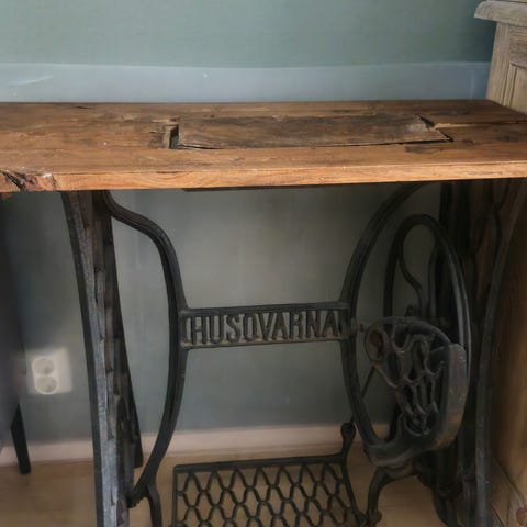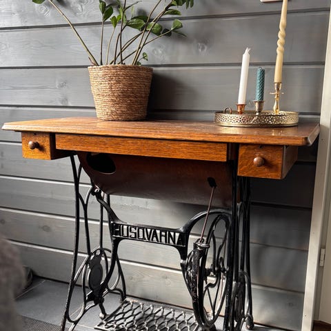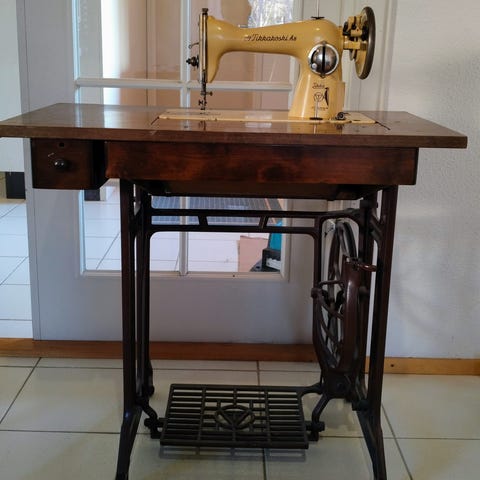 Tikkakoski poljettava ompelukonepöytä puutasolla