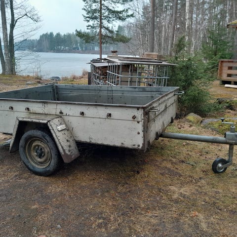 Tieliikenteessä sallittu kokonaismassa 500kg. Uusittu pistoke, kita, valot, nokkapyörä sekä renkaat. Pääosin hyvässä maalissa, maalattu vasaralakalla. Rekisterikilpi huono mutta pysyy hyvin paikallaan.