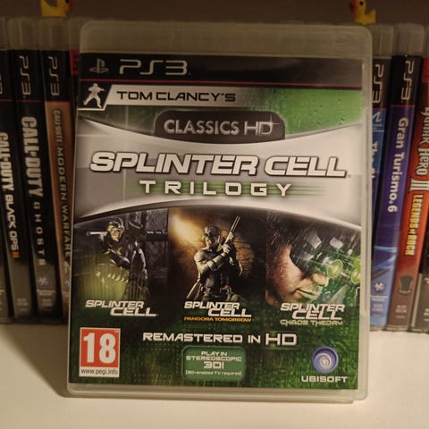 Tom Clancy’s Splinter Cell Trilogy Classics HD on Playstation 3 -peli. Julkaisu sisältää kolme Splinter Cell -pelisarjan osaa remasteroituna HD-laadulla. Peli on Blu-ray-levyllä alkuperäisessä kotelossa. Ikärajasuositus on 18.