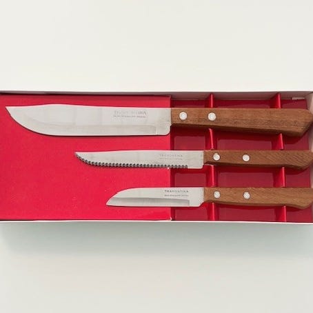 Tramontina Tradicional pihviveitsisetti ja lihakirves puukahvalla
