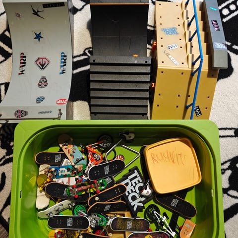 Sormiskeittilauta- ja BMX-pyöräsetti, johon kuuluu useita erivärisiä ja -kuvioisia sormiskeittilautoja sekä pieniä BMX-pyöriä. Mukana on punainen ramppi ja taso, joissa on teippaukset ja paikat pyörien ja lautojen temppuiluun. Soveltuu sormitemppujen harjoitteluun ja leikkeihin pöydällä tai muulla tasaisella pinnalla.