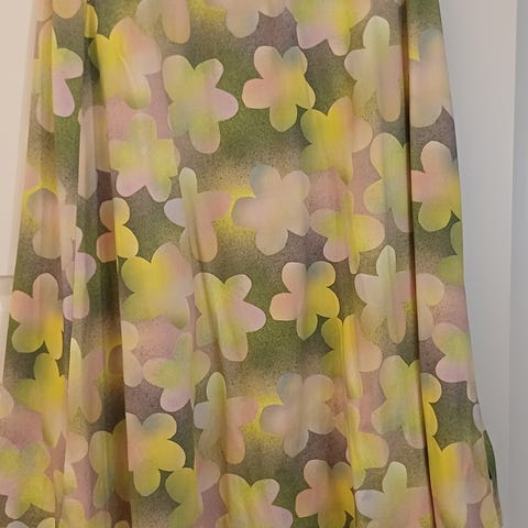 Nosh naisten hame koossa L. Hame on valmistettu puuvillasta ja siinä on joustava vyötärö. Kuosina on mustapohjainen, kirjava vaalea kuviointi. Sopii arki- ja vapaa-ajan käyttöön. Materiaali: puuvilla. Koko: L, naisten mitoitus.