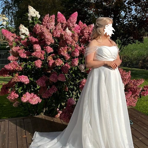 Milla nova.Häämekko naisille, koko M. Valkoinen, olkaimeton tai off shoulder -mallinen pitkä mekko, jossa laaja helma ja laahus. Sopii hääkäyttöön ja muihin juhlaviin tilaisuuksiin, joissa tarvitaan pitkää juhla- tai hääpukua.