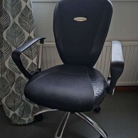 Myydään aitoa nahkaa (istuinosa ja pääntuki) oleva Ikean joitain vuosia vanha työtuoli. Korkeussäätö ja portaaton kallistustoiminto.