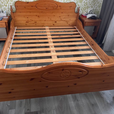Ostetaan puinen, päästä vedettävä talonpoikaissänky kunnostettavaksi lapselle.