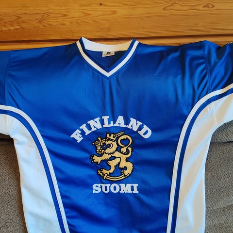 Suomi Finland Leijonat fanipaita jääkiekko-otteluiden kotikatsomoon. Koko: XL eli mahtuu hupparin päälle, jos olet L koon mies tai nainen. Komea Leijonat kuva paidan keskellä. Ovh 89,90 eur.