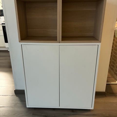 Myydään 2kpl valkoisia seinään kiinnitettäviä Ikean Eket kaappeja ovella. Siistissä kunnossa.