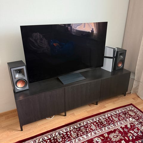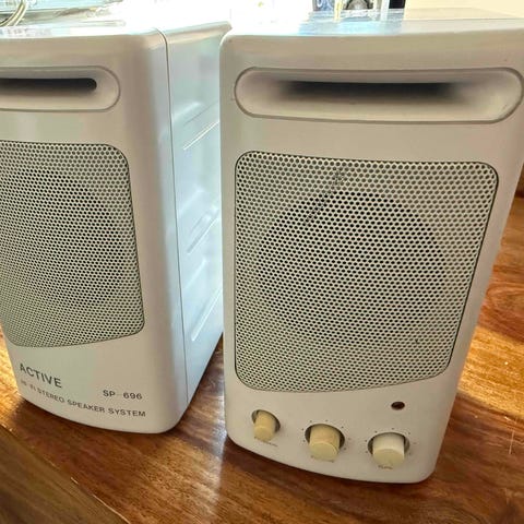 Takana volume, bass ja treble säätimet. Kaiuttimia juuri testattu ja toimivat hyvin. Näiden kanssa et tarvitse erillistä vahvistinta.