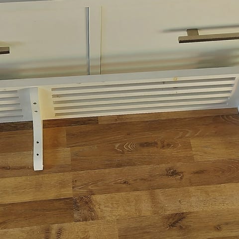 Valkoinen ikkuna-/kukkalauta. Jokunen käytön jälki, yleiskunto hyvä.