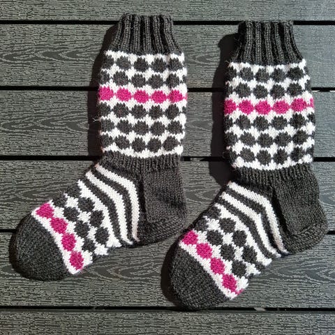 Uudet, pitkävartiset villasukat. Seitsemänveljestä langasta neulotut.