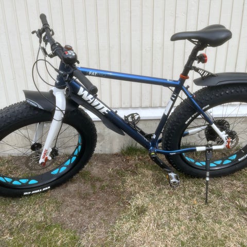 Myydään kuvan White fatbike 6 FAT Pro 19, väri Shine Blue. Ostettu 2019 XXL- liikkeestä. (ostokuitti löytyy) Lokasuojat tulee mukaan.