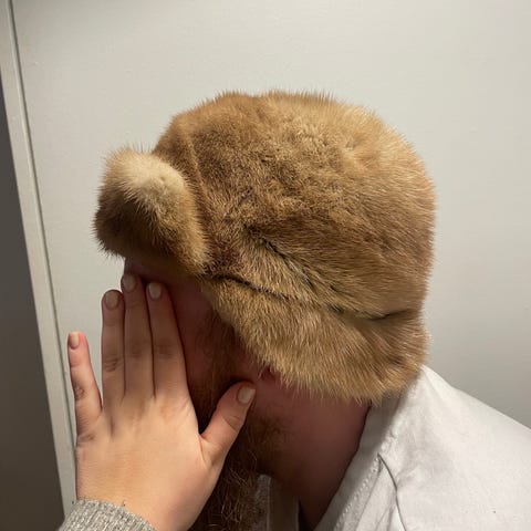 Ruskea, siisti 50-60-luvun minkkiturkishattu strassikorulla. Hatun ympärysmitta sisäpuolelta 56 cm. Hatun korkeus (ulkopuolelta) 13 cm.