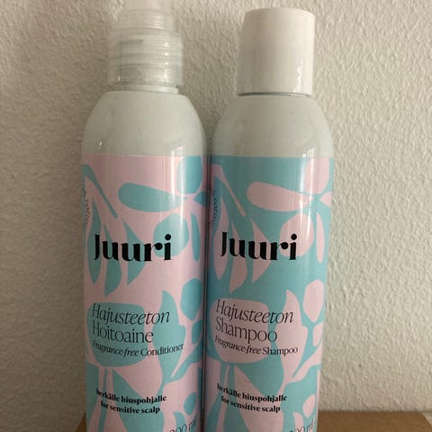 Annetaan sävyttävät shampoo ja hoitoaine. Molemmat purkit avattu, mutta on vielä hyvin tuotetta jäljellä.