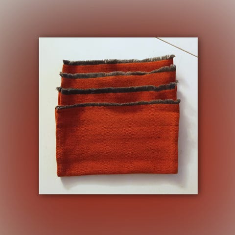 2 punaista ja 2 tumman ruskeaa puuvillaista liinaa..
