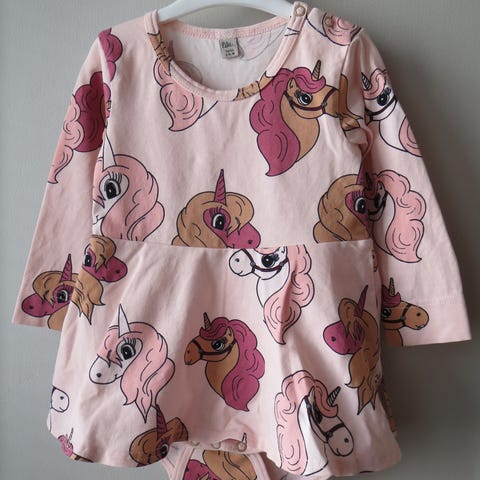 Blaa -merkin puna-valkoruudullinen mekko, jossa kiinni samaa kuosia oleva bodyn alaosa. Koko 74/80. Hyvä kunto.