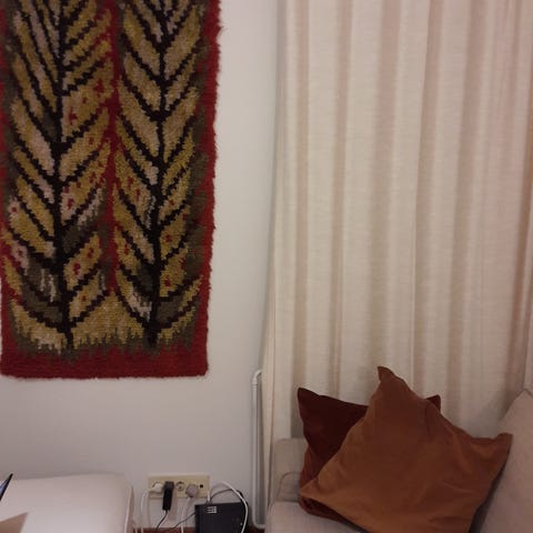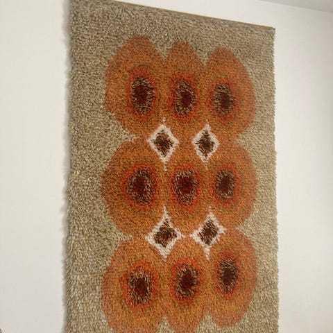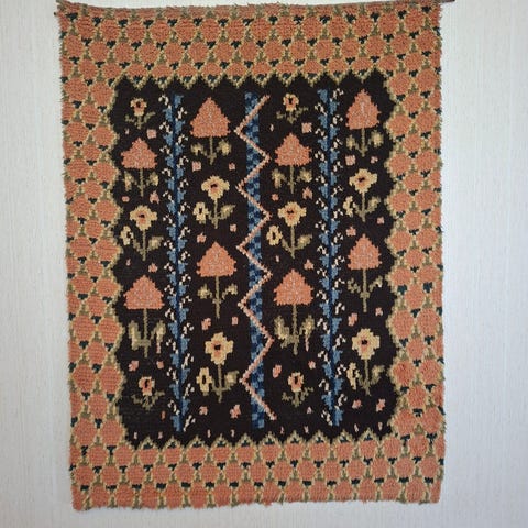 Hyväkuntoinen vintage ryijy. Lyhdyt ryijy, Elsa Koivu