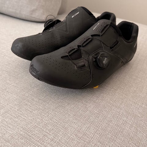 Bontrager hiilikuitu maantiepyöräilykengät, koko 43. Pohjalliset mitattuna noin 28 cm. Kenkiin sopivat maantiepolkimien klossit.