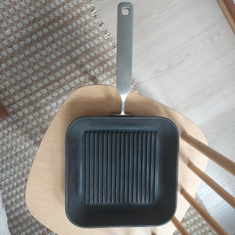 Käyttämätön valurautainen parilapannu.