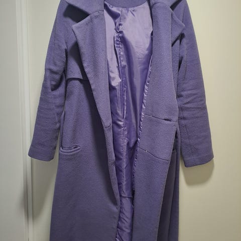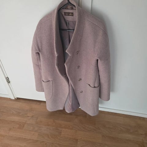 Esprit pitkä naisten villatakki koossa S. Takki on vaaleanpunainen ja valmistettu polyesteristä ja villasta. Edessä on yksi napitus ja suuret paikkataskut. Takissa on vaalea sileä vuori. Malli on suoralinjainen ja pituudeltaan reiden yläosaan ulottuva. Sopii käytettäväksi arkitakkina viileämpiin säihin.