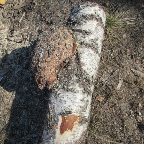 Puuaihio, jossa suuri pahkapuu / pahka rungon kyljessä. Kappale on poikkileikattu tukiksi, toisesta päästä näkyy tasainen sahapinta ja toisella puolella luonnollinen pahkamuodostelma kuorineen. Sopii esimerkiksi puutöihin, sorvaukseen tai koriste-esineiden valmistukseen. Koon hahmottamiseksi kuvissa on juomatölkki mittakaavana.